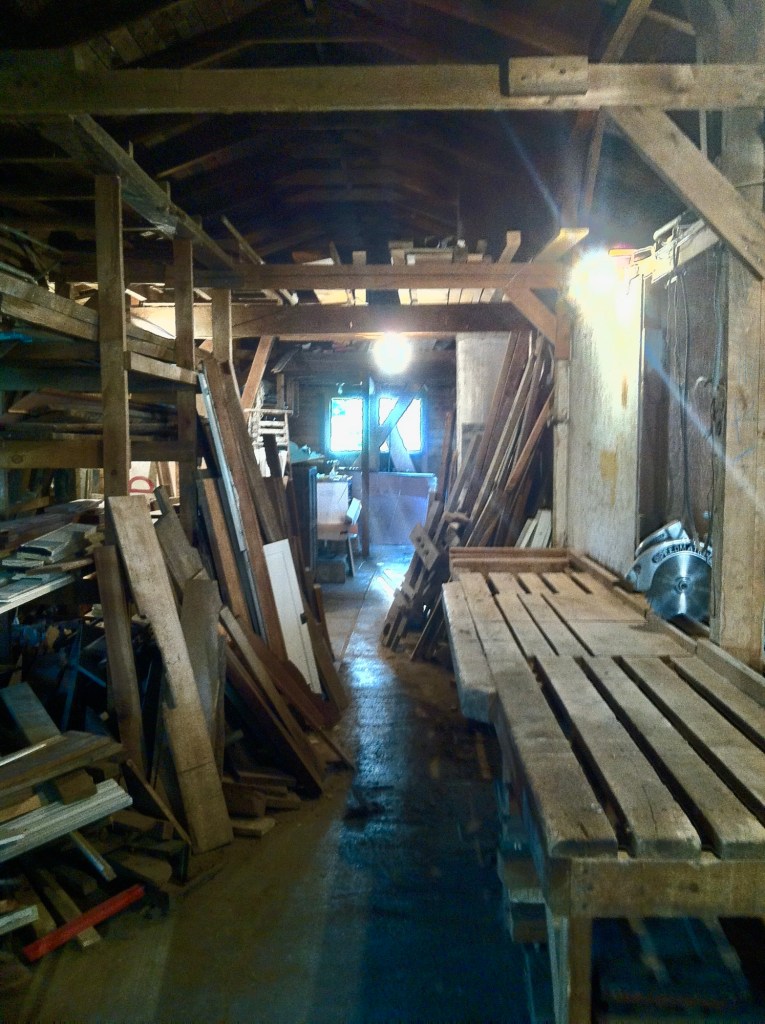 I remembered when my husband Keith and I first bought this property, not even two years before. We bought it at first sight, a 20th Century post and beam building filled with many pieces of 19th and early 20th century heavy machinery all used to make furniture. An accomplished woodworker himself, Keith had planned to make it all his. Alas, the stars were aligned differently and he passed away from a very aggressive cancer barely a year after we purchased it leaving me, his widow, to sort out what to do with it all.