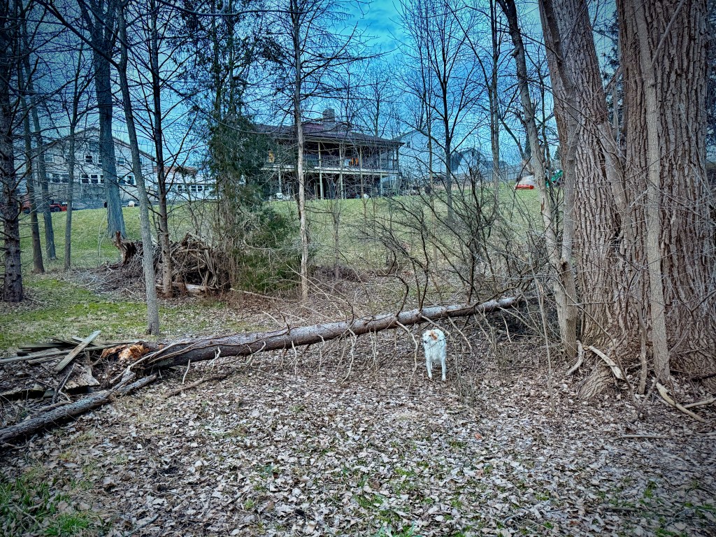 I walk around the sunlit yard, still cold as Springtime brings Mother Nature’s mood swings. Today 70 and warm, tomorrow freezing with snow, the next day a little warmer again but with a harsh driving wind. But then along comes a dreary grey cold rain… and my mood swings, too.