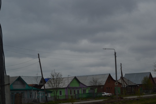 The overcast skies over these dachas promised to make the day even more solemn as they would eventually release a light rain.