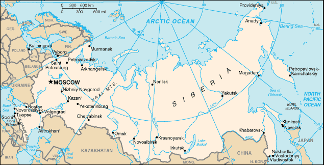 I was thinking… Russia is such a HUGE country! Seven time zones, stretching geographically from eastern Europe to the Bering Straits, facing, yes, Sarah Palin’s home state of Alaska. The country is so big it sits north of Turkey, the Middle East, Afghanistan, India, China, and all of Southeast Asia. The International Dateline, which technically ran through (but politically wrapped around) the Fiji Islands, actually also wraps around the north east end of Russia, again right through the Bering Straits. According to the CIA World Factbook, it is the largest country geographically in the world, with over 6.6 million square miles (compared to the USA coming it at #3 at a bit over 3.8 million square miles, behind Canada).